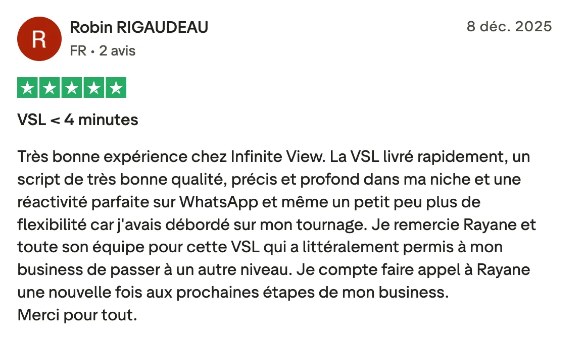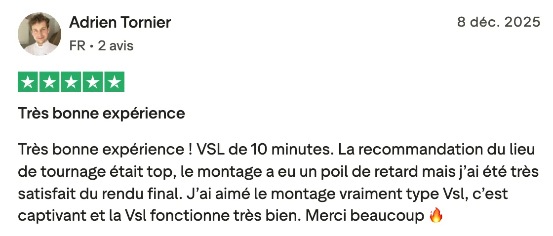 "Ça a été rapide, et on a eu de très bons retours. Notre VSL a bien converti parce qu'elle était bien dynamique."