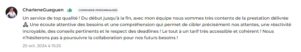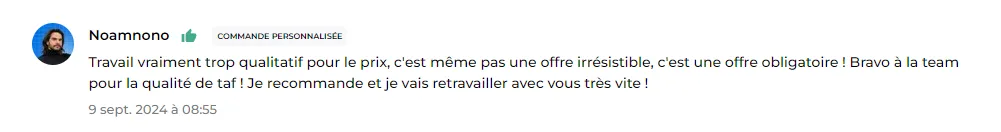 "L'équipe est super éfficace, super rapide. Les rendus sont supers, je vous les recommande fortement."