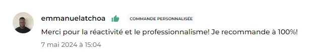 "La qualité est topissime et c'est pas du put* à clique. Je recommande +++ Rayane et ses équipes."